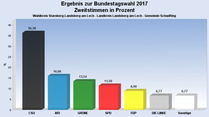 | 7 | FREIE WÄHLER | 10 | 1,57% |